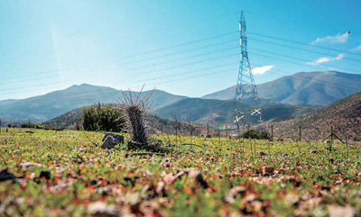 位于智利阿塔卡马沙漠的国家电网输电线路沿线生机勃勃。国家电网供图